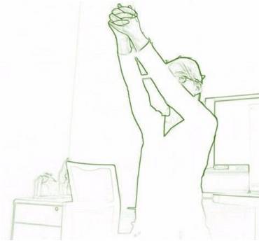 自我治疗:收下颌,尽量将下颌贴近颈椎,两眼平视前方。双手做扩胸张开,肘关节用力下压,肩胛骨向中间加紧。每次坚持10秒,每2小时做5次。