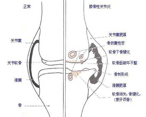 骨关节炎是受年龄、体重、外伤、内分泌、软骨代谢、免疫异常和遗传等多种因素影响的一种以关节疼痛、软骨退化为核心,累及骨、滑膜、关节囊及关节其他结构的慢性无菌性炎症。通俗来说骨关节炎是软骨磨损导致的关节病,主要表现为关节疼痛,稍活动后减轻,过度活动后又加重。治疗是吃非甾体类抗炎药、锻炼和减肥,一般不用手术治疗。但关节软骨破坏较严重的,需要做膝关节置换术。