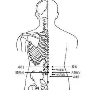 【按摩选穴】肾俞穴、大肠俞穴、腰阳关穴、腰眼穴、命门穴等。