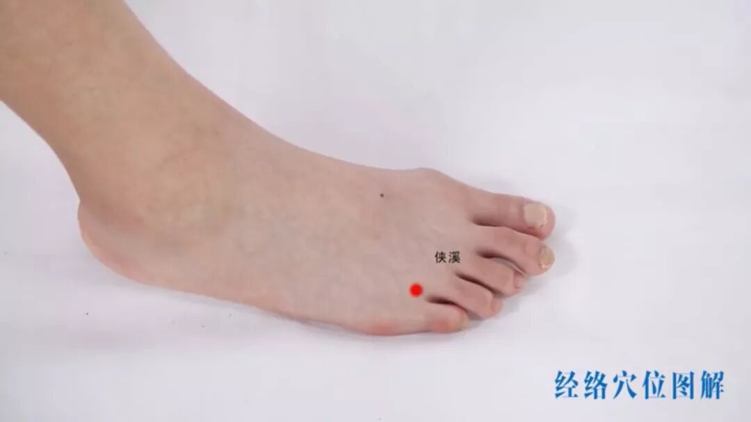 侠溪穴位于人体的足背外侧,当第4、5趾间,趾蹼缘后方赤白肉际处,是足少阳胆经上的一个穴位,我们用拇指和食指点揉10分钟即可,急性腰痛的症状就会得到明显改善。
