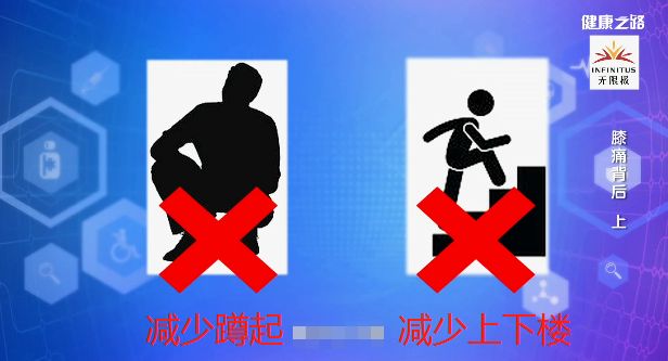 注意:锻炼应遵循循序渐进的原则,膝关节疼痛的病人开始不要蹲过深,建议每次蹲40秒,一天做5次。