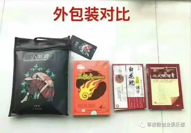 ——包装不同——小黑膏高大上的帆布袋有面子普通膏药低端的纸盒没面子小黑膏高档的铝箔袋防潮、隔热普通膏药低端的塑料袋易受潮、变质