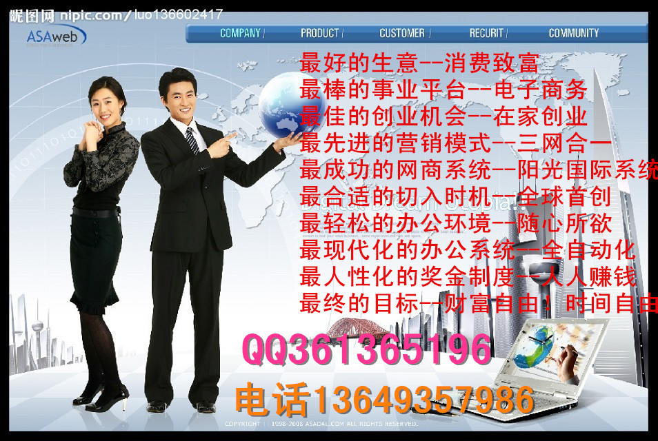 今天E化直销模式:让我们只需一台电脑,一根网线,坐在家里就可以轻松的开放市场。
