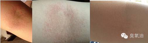 16岁 女 张家港市某中学初三学生 去年夏天开始发生湿疹,期间用过很多药膏,都不管用,过了夏天自然就好了,由妈妈的朋友推荐使用臭氧油抗菌剂Ⅰ,由于白天要上学,只能每天晚上涂抹一次,然后覆盖保鲜膜半个小时,中间还漏了两天没使用。