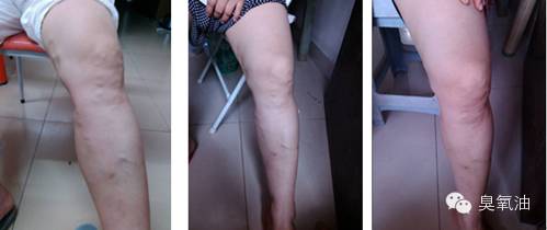 我妈妈调理静脉曲张是这样弄的:先用热毛巾热敷,然后涂臭氧1号,再用保鲜膜包裹,晚上睡觉前弄也行,一宿就不用拿掉,第二天就减轻,三四天就差不多了,严重的时间长点,估计如果一天三次会更好。