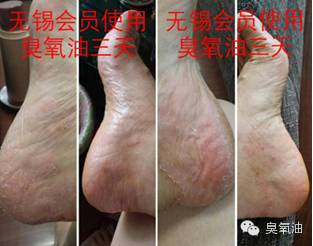 我十个脚趾因为脚气感染成灰指甲,近五六年来吃药包趾甲,已经花了三四千元,反反复复没有痊愈。上次去隆力奇公司参加爱家店店长培训,听徐之伟董事长分享了臭氧油抗菌剂的功效,立马去公司总部爱家店买了一瓶臭氧油抗菌剂Ⅰ试用,现在脚趾已经长出新甲,脚气也好了,最重要的是臭脚不臭了;还有我的脚后跟一直很毛燥,像把锉子,用了臭氧油抗菌剂Ⅰ和蛇油膏,每天用保鲜膜包30分钟,现在的双脚光滑了!