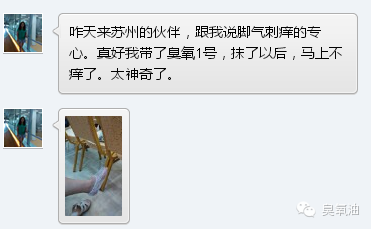 晋城会员路先生,61岁,脚气严重常年困扰,一个月前开始使用臭氧油,刚开始用一个星期,脚气味道几乎没有了,后来慢慢不在蜕皮,又用了一个星期完全好了,现在没有再.反复,为此又后续多买两套,口碑很好,相信会越发现越好。