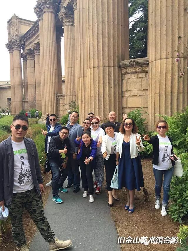 第二站,我们来到了旧金山艺术宫,这座原建于1915年,本是为了巴拿马“太平洋万国博览会”所盖,当时曾吸引了1800万游客参观,如今又吸引了我们隆力奇人参观,罗马式的圆顶配上玫瑰红的科林斯石柱,顶面上浮凸着一幅精细的浮雕,它是如此的宁静美丽,又充满罗曼蒂克的气息。铺陈在它眼前的人工湖水色青碧,水边遍布可躺卧一人的长椅和芳草如茵的绿地。