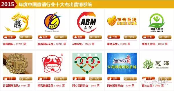 夺得“2015年度中国直销行业十大杰出营销系统”称号的分别是: