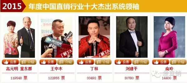 本次大选中,夺得“2015年度中国直销行业十大杰出团队领袖”称号是分别是: