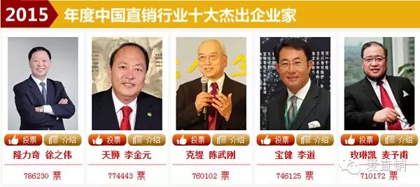 此次夺得“2015年度中国直销行业十大杰出企业家”称号的分别是: