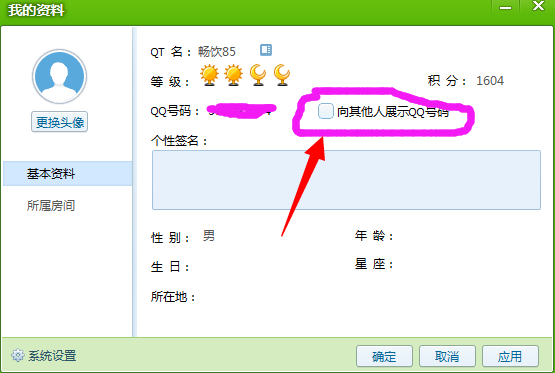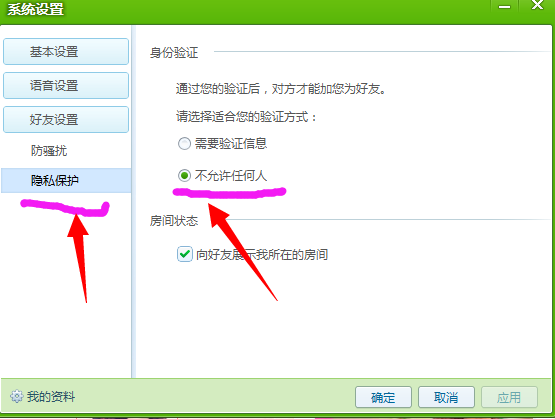 4.修改完成之后,在回到这个页面 把对勾取消掉,防止进房间后被骗。