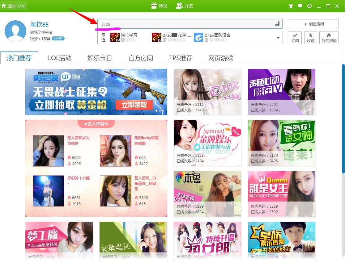 7.做完这些动作就可以进了,在首页搜索栏中输入(3726),在按回车键,就可以进去了。进去之后先不要乱动,会有人拉你的,接下来就会有美女讲师为您做非常细致的讲解了,