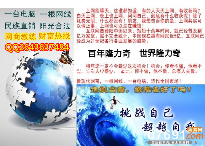 6、隆力奇直销电子商务运作,国内拿牌40多家直销公司当中,首家将互联网和直销当今时代最大的两个趋势完美结合,让你轻松创业,快乐赚钱!行业的趋势,是最佳的切入时机。