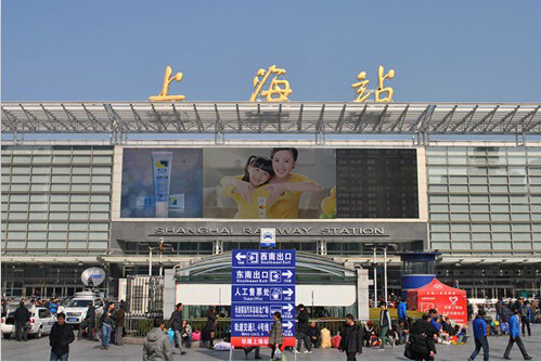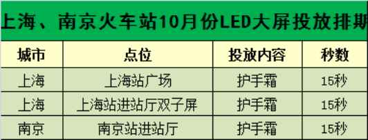 在上海、南京火车站主要醒目点位LED大屏滚动多频次播放护手霜广告。