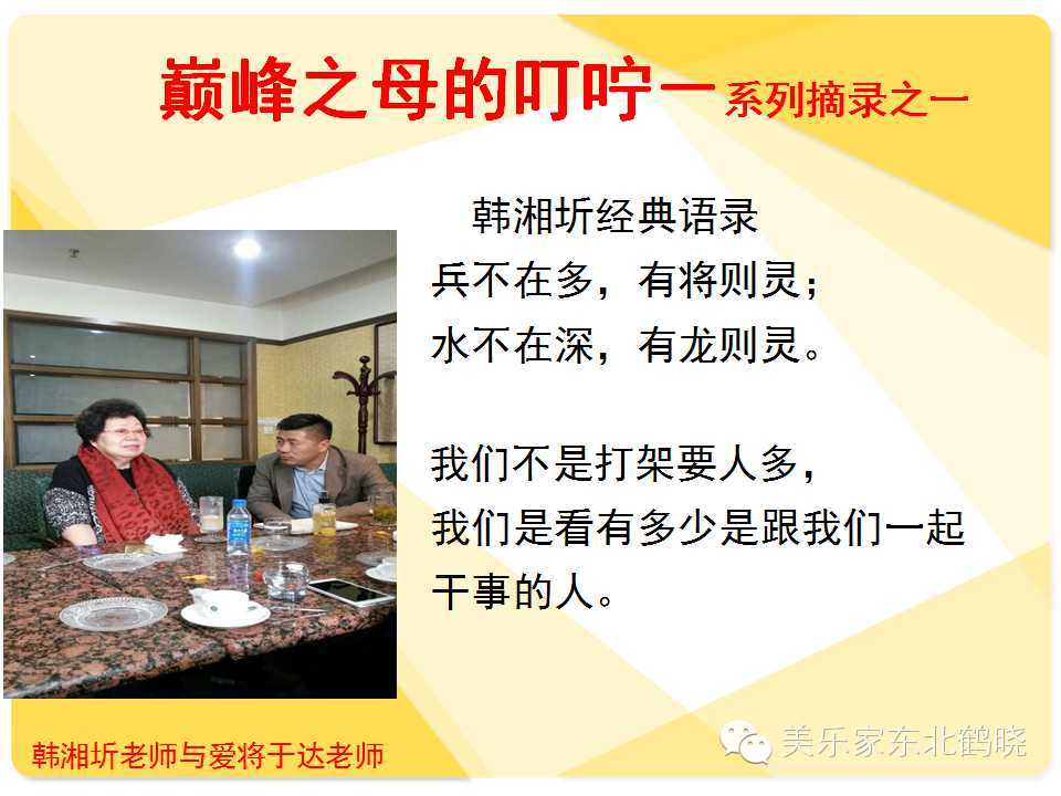 韩湘圻老师和于达老师对巅峰美乐家鹤晓沈阳团队单独辅导内容摘录之一
