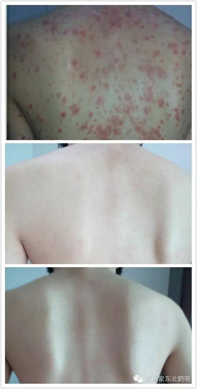 我后背是最严重的地方,一个半月的时候后背几乎就没有多少印记,摸着也滑滑的,比没有得病之前皮肤还要好。