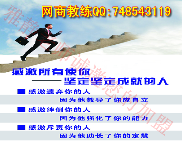 雅静网号★748543119★ 互联网创业系统核心领导-网商教练!今天,携手知名网商中国联盟系统,积累大量丰富实战经验,具有超强团队管理能力、和计算机知识。目前正带领团队伙伴在互联网住家创业大舞台尽展人生精彩,尽抒创业豪情!