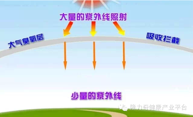 在离地球约15-25公里的高空,有一个大气层,在大气层的最外面,有一个薄薄的臭氧层,它阻挡了太阳光中90%以上的紫外线,保护了地球上的众多生物,减少了人类皮肤癌和白内障的发生。