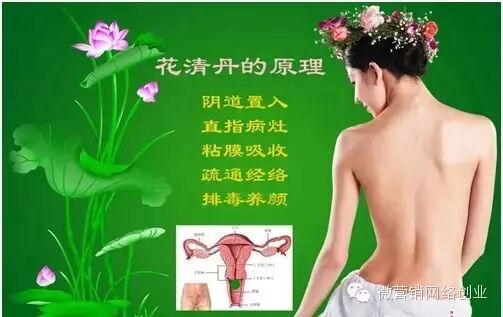 “花清丹”放在阴道内宫颈口,在人体的温度与湿度的作用下,产生一定量的气体与气味,在外界大气压的作用下,气体进入到子宫内,气味被黏膜吸收,使原来接近真空的子宫微微扩张,从而使子宫内的垃圾在地球引力的作用下,流出体外,从而疏通筋络,排毒养颜。它是一个物理原理,不是医院里配的药品,发生的是化学反应。
