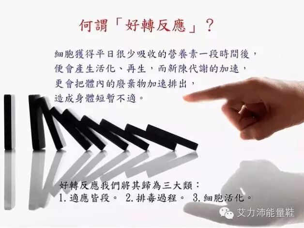 有人穿了魔力鞋会出现高烧,这是因为气血上来了,人一年发一次烧没关系,但此时一定要多喝水,这些都是正常的,等待新鲜血液替换完成这些复原反应都会消失,还有就是排毒,人体本身具有解毒功能,身体在运作的时候会把体内的毒素、垃圾等排除体外,但是随着年龄的增长,我们的新陈代谢水平越来越低。