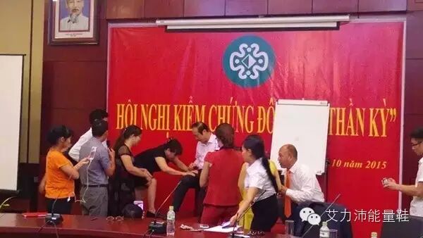 张教授为越南的代表们作了魔力鞋保健报告,并进行了经络穴位诊断,以及魔力鞋穿着前后的对比试验。会议现场精彩不断,语言的障碍丝毫没影响魔力鞋神奇的功效的展现和两国人员的交流,会场笑声不断,惊呼声不断。越南代表被来自中国的“神鞋”深深吸引。