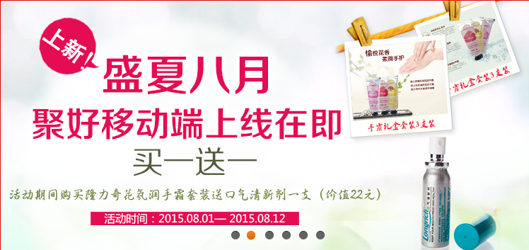 盛夏八月,庆祝聚好网移动端上线在即和北京张家口申办2022年冬奥会成功,聚好网推出买即送年中大促,凡是在聚好网M店热卖购买隆力奇香氛润手霜套装立即送隆力奇口气清新剂一支,多买多送。