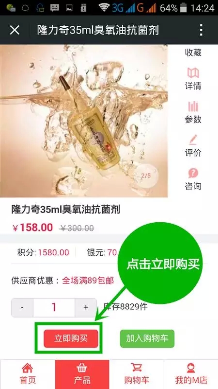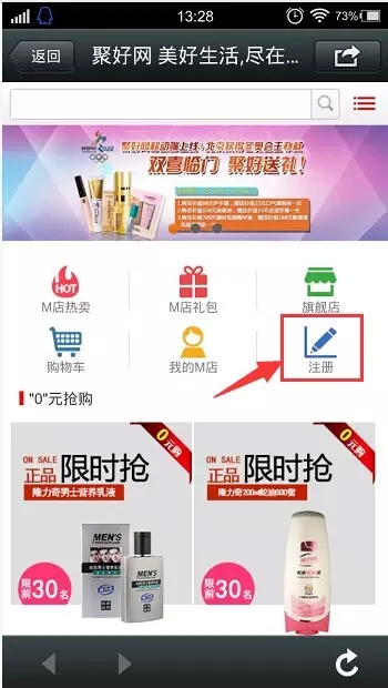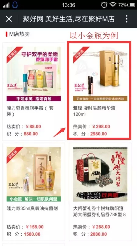 1,注册并登录之后,进入“首页”--往下拉至“M店热卖”板块,选择您喜爱的任一产品(以小金瓶为例),点击: