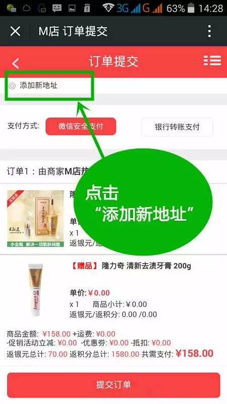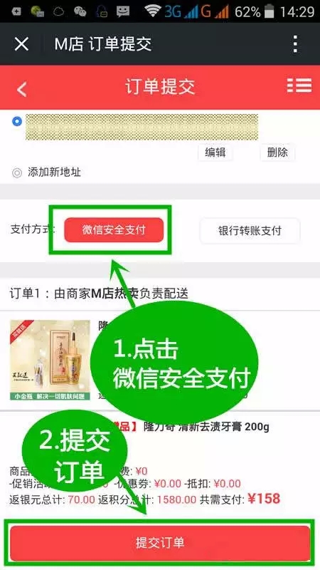 6.回到“订单提交”界面,点击“微信安全支付”,并点击“提交订单”: