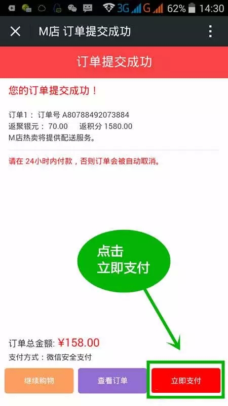 7.进入“订单提交成功”,点击右下角“立即支付”: