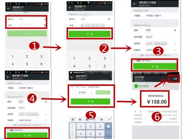 9、如果您此时没有开通微信钱包,简单6步绑定银行卡