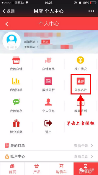 打开微信,进入“聚商在线”公众服务号,点击“聚好商城”——会员中心——登录您的会员中心,你就会看见一个“分享名片”的按钮(如下图,图片仅供参考,以实时手机型号、系统为准)。点击在线注册添加微信平台:pfrcy868,您将得到一个免费一生的互联网创业导师(备注:如果您没有看见“分享名片”这个按钮,请先清除一下微信缓存。)