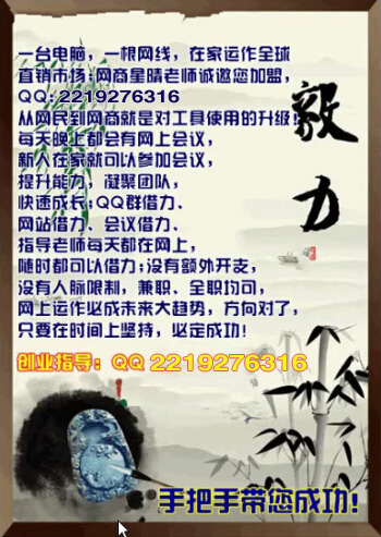 70.80.90后有梦想的我们,在物价疯涨的时代,打工基本不能再满足我们的生活质量,这个时候是不是我们更需要一个平台,一个机遇。我们不缺自信,不缺激情,不缺努力。缺的就是那个不经意间悄悄就来到的机遇。隆力奇复合型电子商务直销。你了解了吗?肖费能争钱的理念,你明白了么?想改变的,不满现状的朋友可以联系创业导师--隆祥老师 QQ:2219276316 微信号:lwcgllq