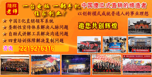 ★〓〓〓〓〓〓〓〓〓〓〓〓〓〓〓〓〓〓〓〓〓〓〓〓〓〓〓〓〓〓★一台电脑,一根网线,在家做全国生意!★隆力奇电子商务创业导师真诚与您交流创业导师:隆祥老师 QQ:2219276316 微信号:lwcgllq 让我来指导您一起成功!★ ☆ 励志照亮人生 ☆ 创业改变命运 ☆ 中国创业网商时代 ☆★〓〓〓〓〓〓〓〓〓〓〓〓〓〓〓〓〓〓〓〓〓〓〓〓〓〓〓〓〓〓弘扬国学智慧,书写圆满人生;培育儒商领袖,助力民族复兴!