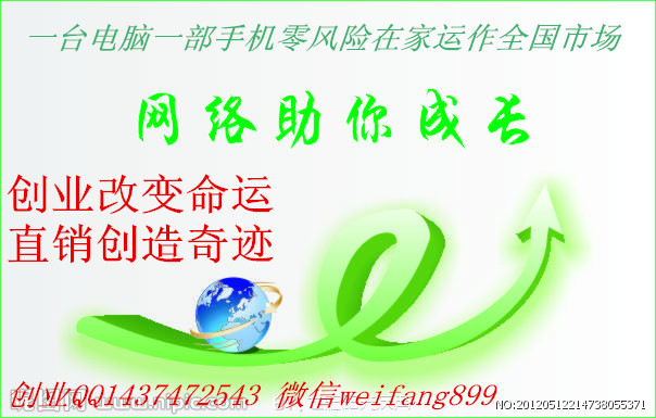界宣布 2010年4月21日正式启动全球直销奖励计划这是国家特许颁发牌照、法律保护、政府大力支持的平民创富项目,隆力奇E化直销事业,他破解了困扰直销行业几十年的三大难题,就是人脉、复制、和推销,从而大大降低了直销的运作难度,成功率也随之大大提升。9大独特的优势:第一,隆力奇品牌优势,央视广告全年大覆盖,可信度强,实力保障,值得信赖。第二,没有风险:任何生意都要投资,投资就有风险。但是,隆力奇电子商务,我们投资以后,会获得等值的生活必需品,并且是一次性的。所以,归根结底我们是消费了,并非是投资了,那就不存在风险一说了。第三,时间自由:专职、兼职都可以从事,我们不需要为了创业就辞职丢工作,失去生活保障。第四,空间自由:在办公室、在家、出门旅游,地面、网络都可以做,发展方式非常灵活。第五,人格独立:无须拉关系走后门,光明磊落做事业,永远没有人格风险。第六,少走弯路:团队运作,不需要丰富经验,有人教有人帮。大家一起帮您做,很快就有收入。第七,良好福利:一年完成原始积累,两年彻底改变一生,制度公平合理,多劳多得,发展潜力巨大。第八,法律保障:合法、政府倡行、法律保护,是我们可以放放心心长期从事的事业。第九,制度优化。老牌公司需要1个人完成横排10几个部门,而隆力奇公司采用双轨复合制制度,加入2.5万元参与全球一家互助,及时您只是消费等值产品,公司就送100个会员为你打工,做到不做也拿钱,单轨领跑全世界!隆力奇电子商务以地面、网络发展相结合,天网、地网、人网三网合一,这是我们每一位参与者真正能够快速倍增财富、快速建立团队的有力保障。