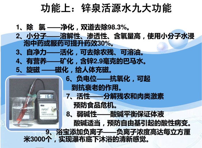 一台锌泉水机能处理80吨水,相当于16万瓶高品质矿泉水。按照一瓶2块来算,也值32万。而现在每瓶才1分多。