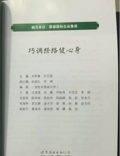 《巧调经络健身心》就是刘笑春教授与聚德国际董事长刘兰香女士一同主编完成的: