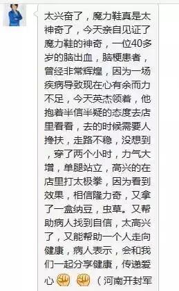 脑出血后遗症患者点赞魔力鞋 “42岁脑出血病人试穿魔力鞋20分钟后,直说:“行,行,行,这鞋真神”。