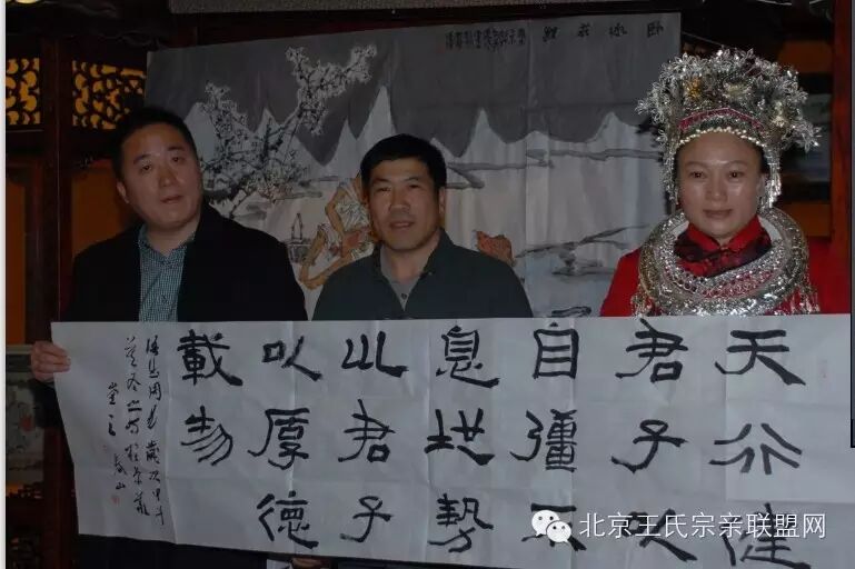 推荐阅读 北京王氏宗亲联盟网2015迎新春联谊会在京召开2月1日,由北京王氏宗亲联盟网发起的首届北京王氏宗亲2015年迎新春联谊会隆重召开,近百位王氏宗亲欢聚一堂,共同参加了这一盛会。 17时35分,北京王氏宗亲联盟网2015迎新春联谊会在主持人王皓、王伯强宣布下开幕。 大会第一阶段由王皓、王伯强主持各项议程: 首先向大家介绍今天到场的嘉宾: 原北京军区军事检察院院长 王成维先生 北京大学教授 王雪芹女士 中国青年政治学院教授 王大良先生 华悦名豪商贸(北京)有限公司董事长 王平安先生 北京冠辰祥瑞文化传媒有限公司董事长王东宁先生 中华儒商国学院院长王石先生 福鼎闽行茶业有限公司 王本士先生 大会第二阶段: 1,各位宗亲致辞; 2,亲情聚会、嘉宾云集、项目对接、茶话迎新、幸运抽奖、文艺演出 图片报道: 全家福 参会宗亲 参会宗亲 参会宗亲 王春山老师赠送组委会书法 卧冰求鲤 王氏图腾 联谊会现场 宗亲现场赠书法 主持人王皓,王伯强 参会宗亲 参会宗亲 北京王氏宗亲联盟网2015迎新春联谊会通过大家的区同努力,现已圆满完成了各项议程。