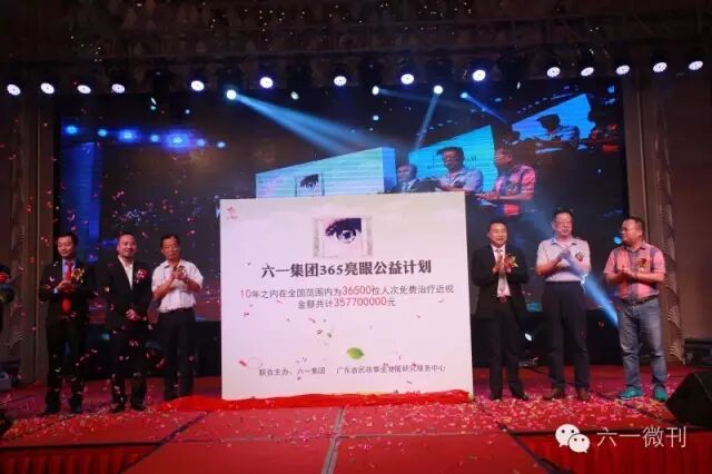 365亮眼公益计划》是由六一集团和广东省民政事业发展研究服务中心联合推出的大型公益活动,旨在帮助更多的青少年远离近视,让他们的双眼从此“亮”起来。该计划将在未来10年之内为36500位近视患者提供免费治疗,涉及的总金额共计357700000元。