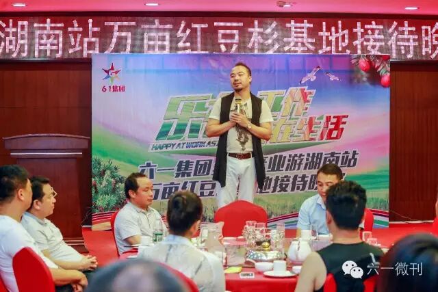 此次湖南游,得到了当地政府的高度重视和大力支持。欢迎晚宴上,商务粮食局赵刚副局长受祁阳县委县政府委托,向参加此次湖南游的六一家人们表示了热烈的欢迎,同时,作为金克成董事长家乡的老朋友,他也对六一集团选择回到家乡、奉献家乡的行为表示十分欣慰,祝愿六一集团在祁阳的红豆杉项目发展顺利,祝愿六一集团的未来发展前景广阔,也祝愿本次湖南游圆满、顺利、开心。