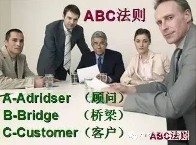 ABC法则就是在你的介绍之下,由你的推荐人或者团队领袖向你的潜在客户介绍公司、产品与制度的一种沟通方式。