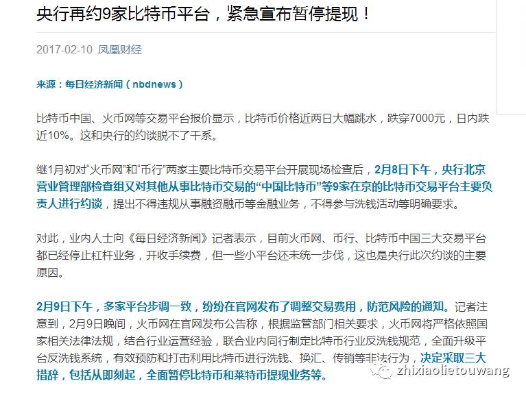 打传新闻 央行再约9家比特币平台,紧急宣布暂停提现!直销猎头网公众平台公众号:zhixiaolietouwang ,咨询客服微信号:1258217915!