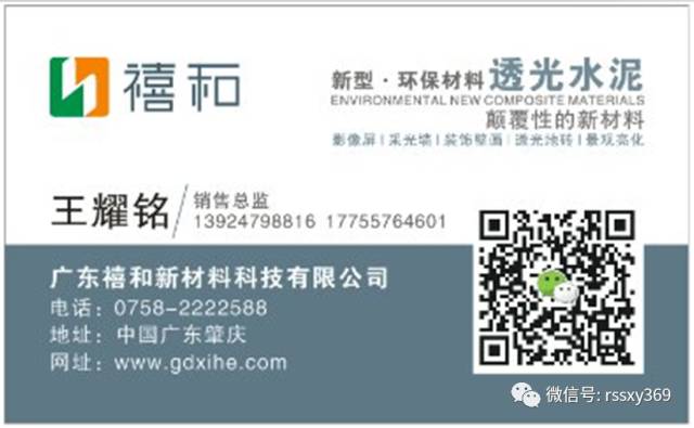 推荐阅读 颠覆性新型环保材料透光水泥:发光地砖,水泥世界里的一抹色彩!儒商集团公众平台公众号:rssxy369 ,咨询客服微信号:272973053