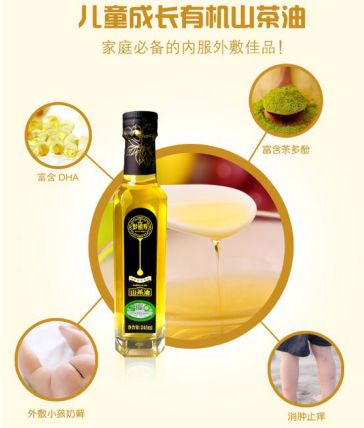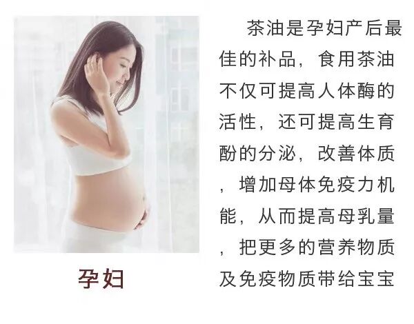 维生素E :山茶油中维生素E的含量是橄榄油的7倍,提高生育酚,能促进性激素分泌,提高生育力,预防流产,改善血液循环,增加母体母乳分泌量。